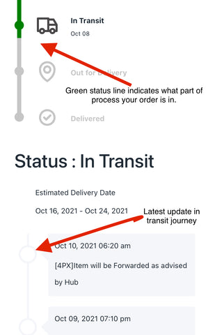 Order Tracking: As soon as your product ships, you'll receive a confirmation email with a tracking number and a link that will let you keep tabs on where your order is at all times, you can also track the status of your order from the Track you order page with your order number and email address. A estimated delivery window will be shown on the tracking page along with the various stages in transit your package is travelling through.